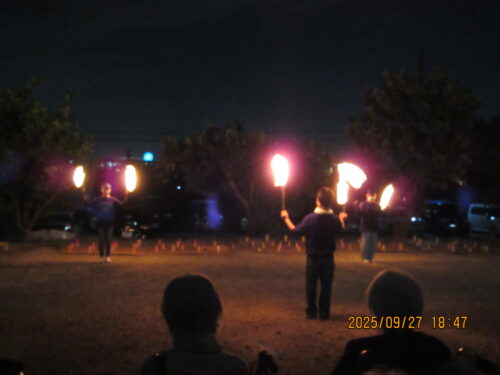 ドキドキ!夏の夜空に大興奮!今年も心躍る花火大会が開催されました!職員の華麗なトーチ棒パフォーマンスには、みんなの目が釘付け!カラフルな光のショーに、会場は大盛り上がり!復活したファイヤートーチの炎の迫力には、思わず「うわー!」と歓声が上がっていました。フィナーレを飾ったのは、夜空を彩る美しい噴出花火。皆様にとって、最高の夏の思い出となりましたでしょうか。来年も、皆様と一緒に素敵な思い出を作れますよう、心より願っております。